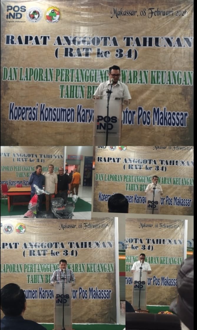 Dalam Sambutan Pembuka oleh Ketua Koperasi Karyawan Kantor Pos Makassar bapak Rahmad Djafar atau akrab dengan sebutan Radja menyampaikan. Rasa Bersyukur kepada Allah atas kegiatan RAT yang akan dilaksanakan dan Terima kasih kepada Bapak Kadis Koperasi yang sempat hadir dengan para pendamping yang selama ini sangat membantu kami sehingga keberadaan kami bisa melakukan RAT ke 34 tahun, kami sadar tanpa dukungan Pemda cukup sulit untuk bisa tetap bertahan disaat ini, kami sadar masih banyak yang perlu kami lakukan untuk bisa membuat anggota tambah senang namun tentunya kami juga harus berhati-hati menjaga kepercayaan anggota agar mereka tetap dapat menikmati Sisa Hasil Usaha setiap tahun, walau ada beberapa tantangan yang harus kami hadapi tahun 2025 salah satunya persaingan untuk menjadi Koperasi Pilihan utama Karyawan dan anggota untuk memilih sebagai tempat pinjaman yang nyaman karena pastinya ada cashback setiap tahunnya, sadar kami masih harus bersaing dengan pihak perbankan atau Koperasi lainnya yang menawarkan nilai pinjaman yang lebih besar. Ketua Radja juga menyampaikan rasa bangga kepada bapak EVP mewakili manajemen yang selalu meng support kegiatan Kopkar, begitupun kepada bapak EGM yang membuka ruang kerjasama sehingga anggota merasa sangat nyaman dalam wadah Koperasi Karyawan ini.
